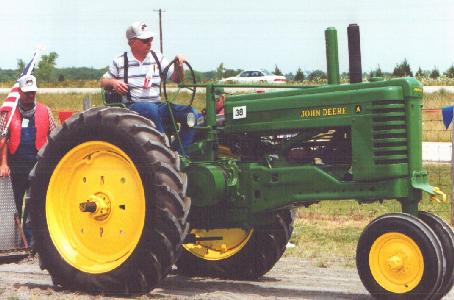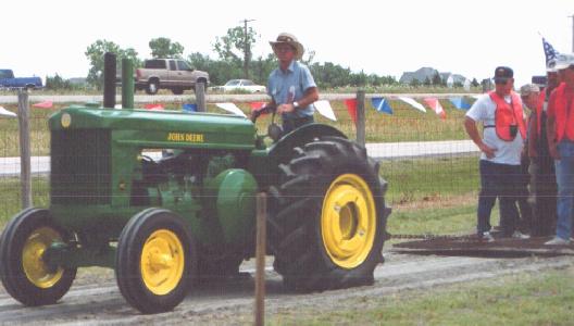 the tractor pull. Here, Bobby Tucker of Burleson puts his 1950 JD A