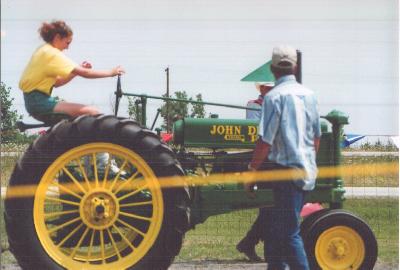 Mom (Angie) is also practiced at wringing a good pull from a two-cylinder Deere.